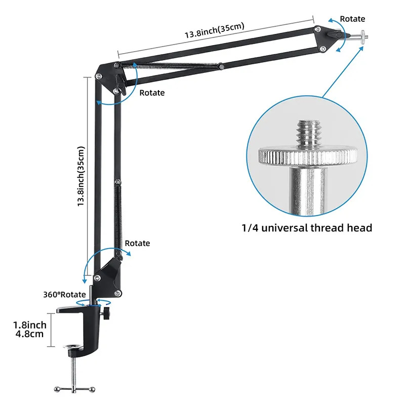 - Adjustable Height and Angle: The stand features a height-adjustable design, allowing you to customize the position of your microphone for optimal sound capture. It also allows for 360-degree rotation, enabling you to easily adjust the angle to suit your recording needs.